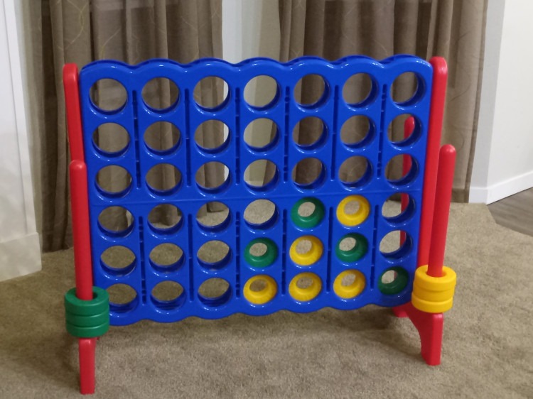 Giant 4 In A Row for $30.00Table setup/breakdown $3 each:Giant 4 In A Row for $30.00102937147_2925363_29253490000 Giant 4 in a Row Game, A larger-than-life version of the classic connect four game. Perfect for any event. Price: $25.00 with chair rentals